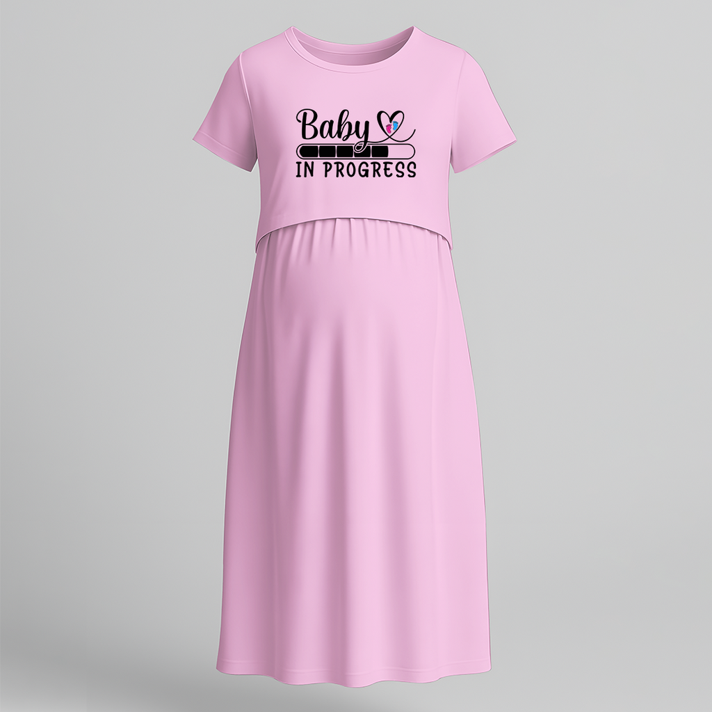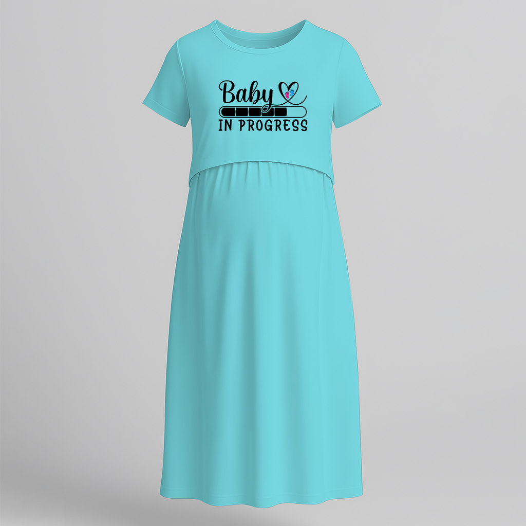 "Baby In Progress " - Comfort Fit Maternity Maxi Dress With Prints