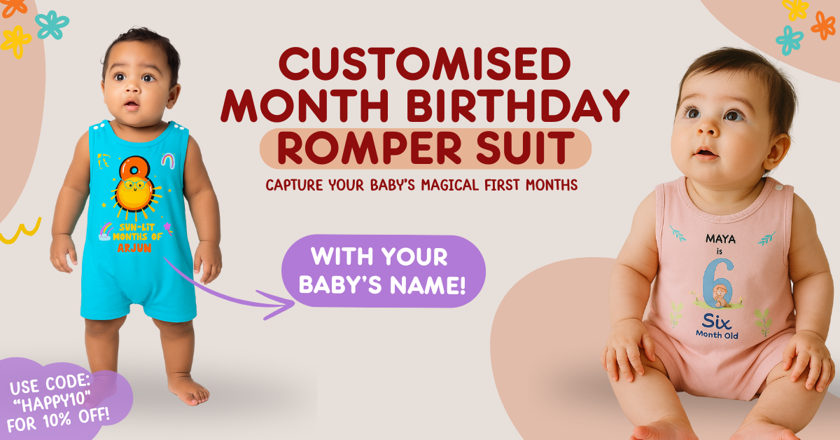 Customized Baby Romper Suit/ Sleeveless Romper | Celebrate 1st Month | Soft & Comfy Fit Romper Suit/ Sleeveless Romper
