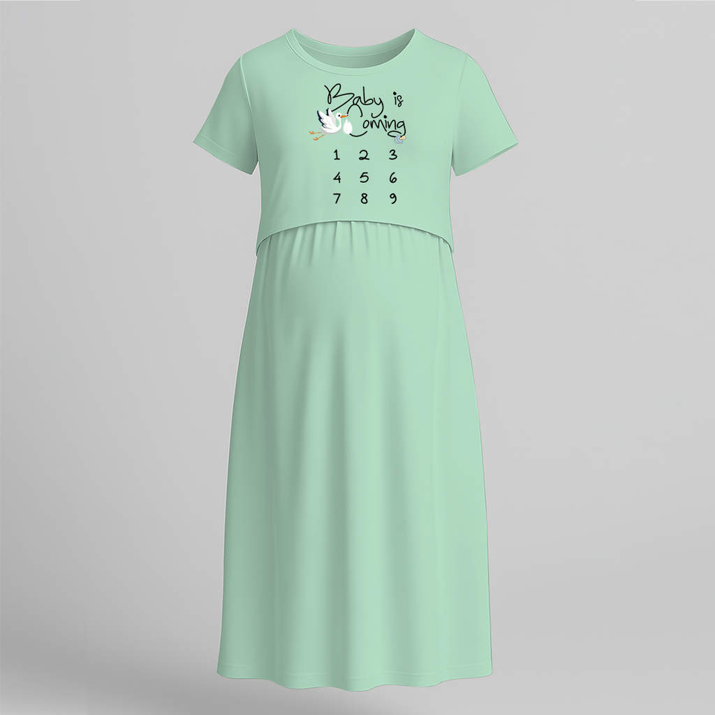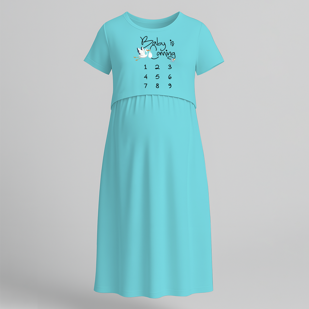 "Baby Is Coming..."- Comfort Fit Maternity Maxi Dress With Prints