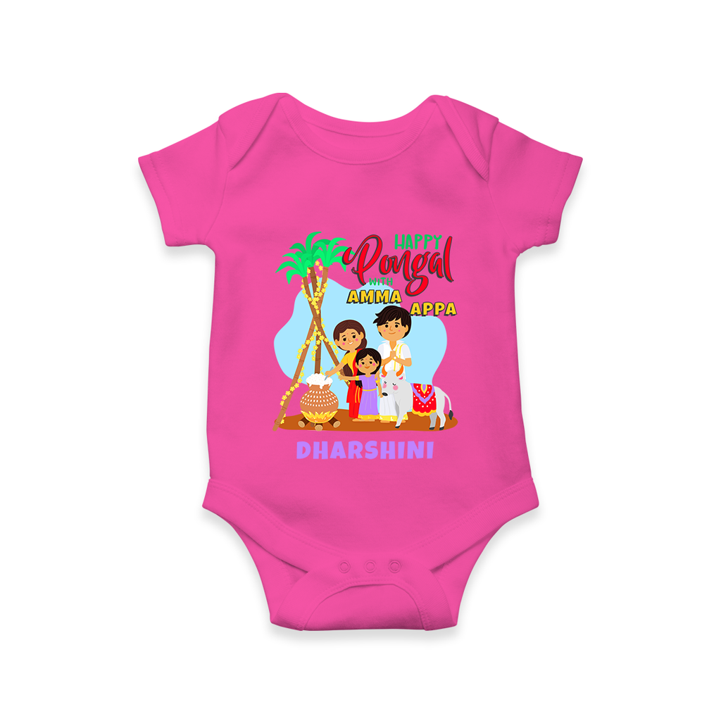 “Happy Pongal with Amma Appa” Family Illustration | Personalized Kids Romper