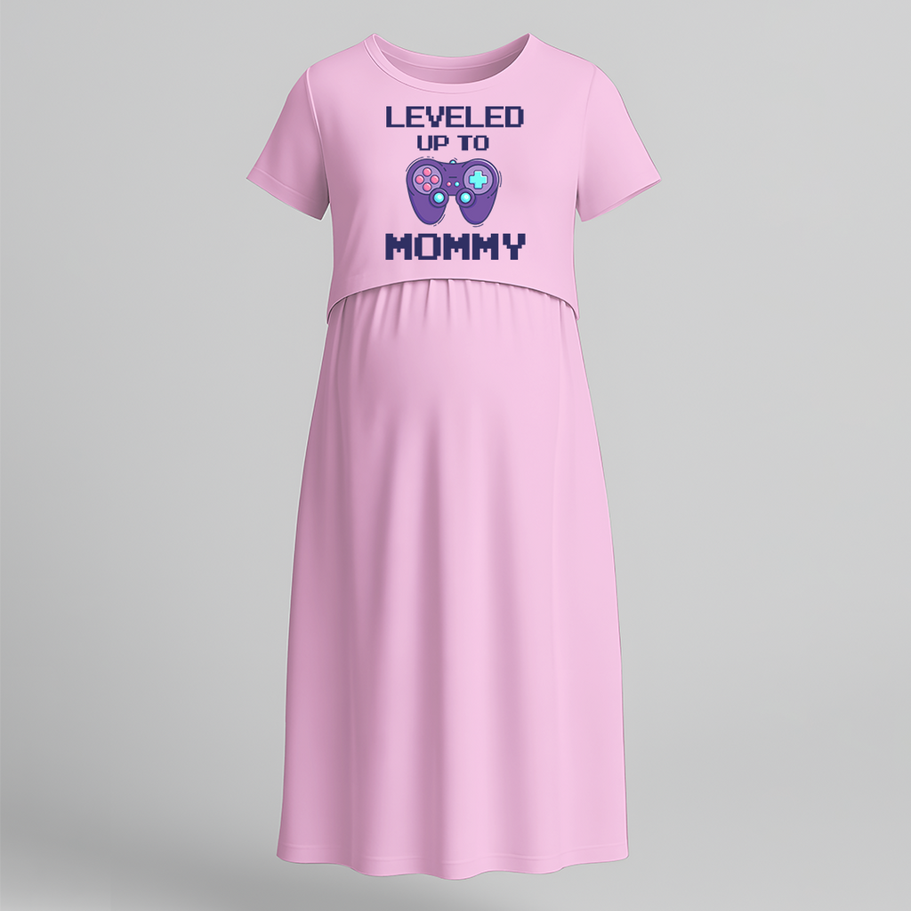 "Leveled Up To Mommy "- Comfort Fit Maternity Maxi Dress With Prints