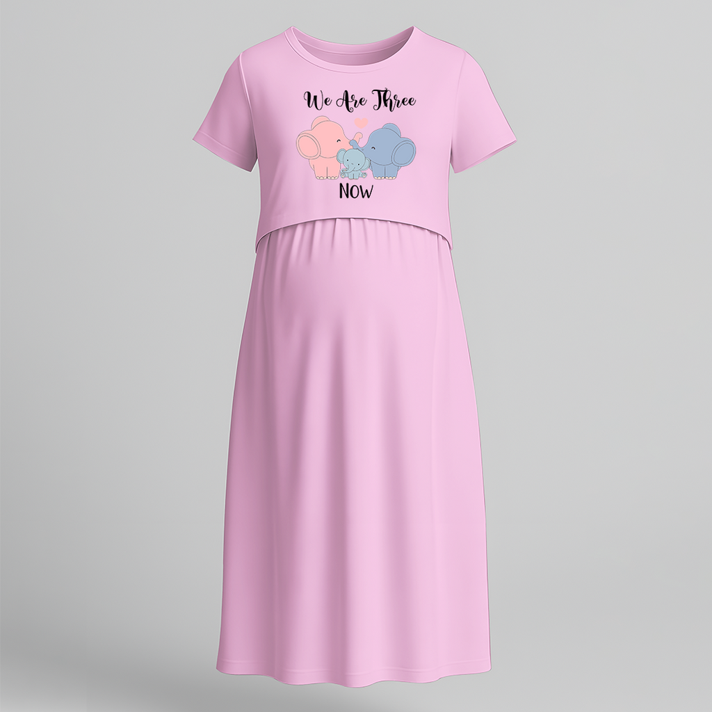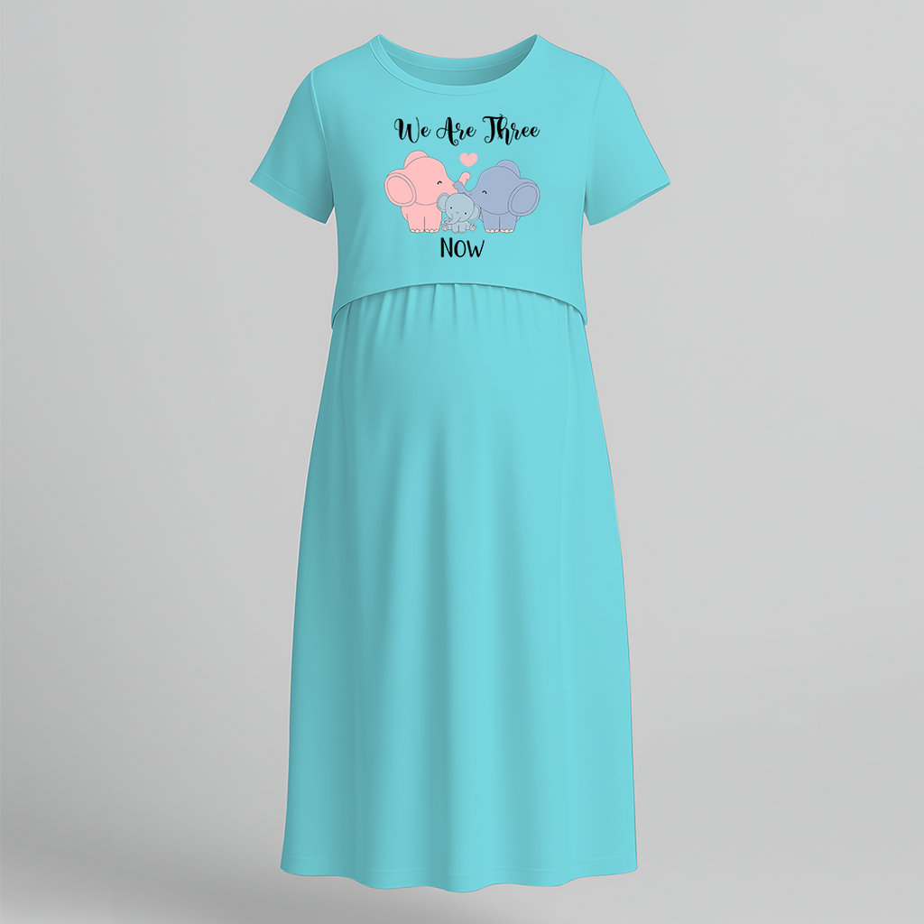 "We Are Three Now "- Comfort Fit Maternity Maxi Dress With Prints